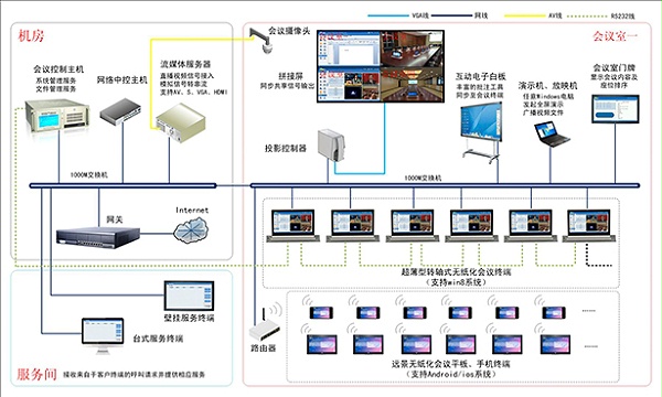 後台管理(lǐ)操縱:情況服務器(qì)支持統一的操縱電子化會(huì)議終端,包含LCD提高(gāo),啓動,開(kāi)關電源和同樣的顯示屏廣播節目。